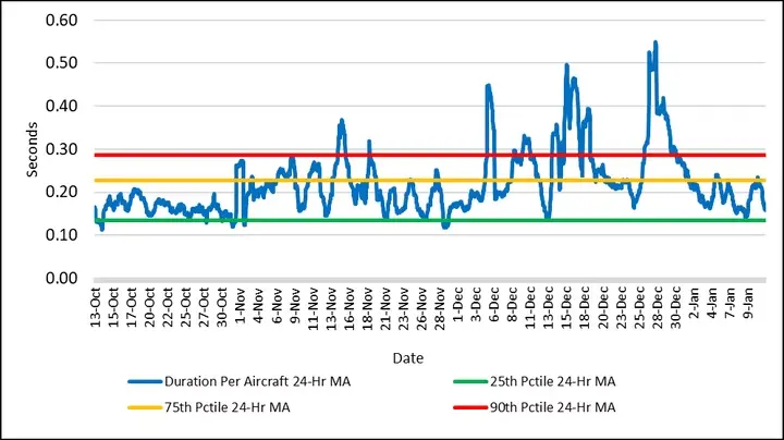 Figure 3. 24-Hour Moving Average Encroachment Duration Per Aircraft for the Three Months Ending January 11, 2025