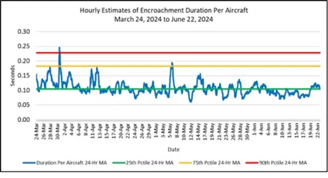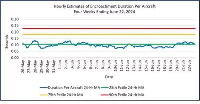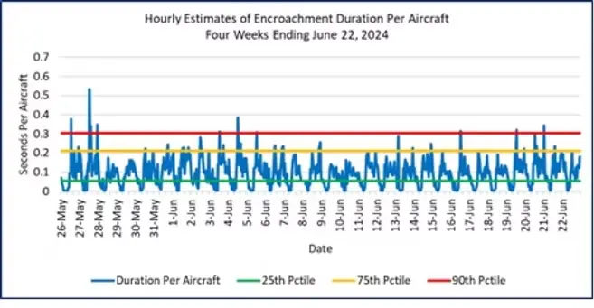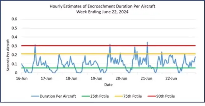 Figure 2. Hourly Encroachment Duration Per Aircraft for the Week Ending June 22, 2024