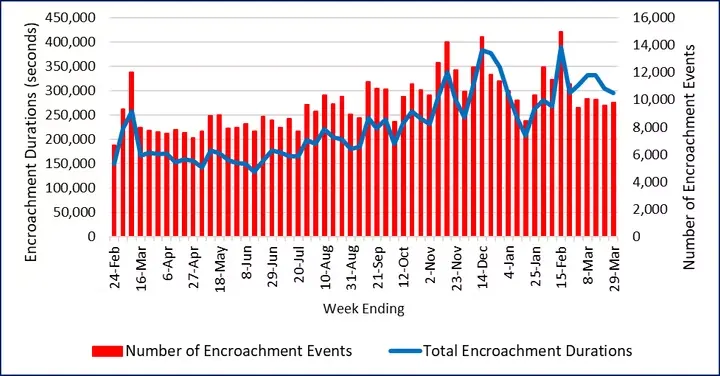 Figure 3. Weekly Trends in Encroachment Durations By Separation Conformance Category