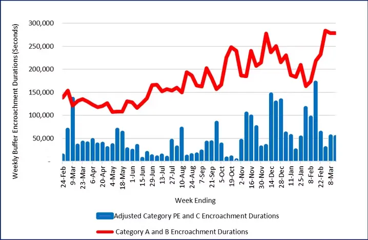 Figure 3. Weekly Trends in Encroachment Durations By Separation Conformance Category