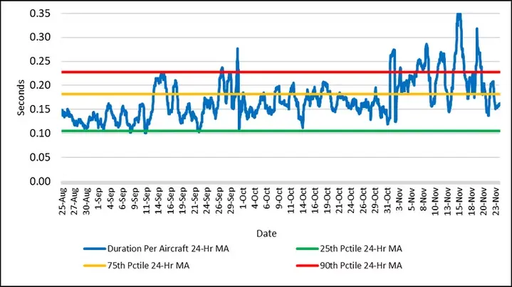 Figure 3. 24-Hour Moving Average Encroachment Duration Per Aircraft for the Three Months Ending November 23, 2024