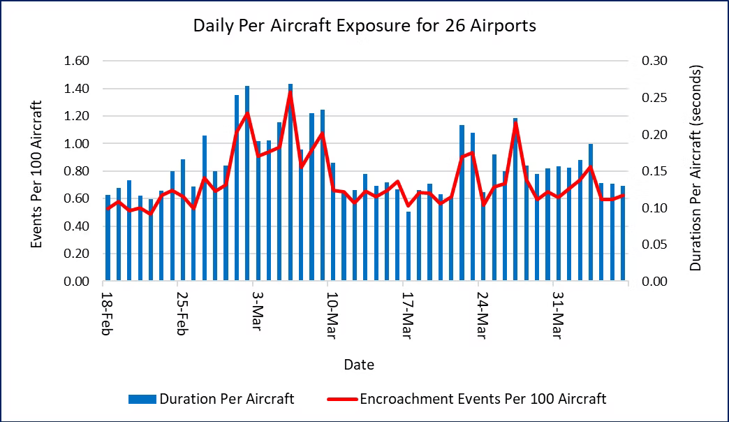 Figure 1. Daily Encroachment Counts and Durations for 26 Airports