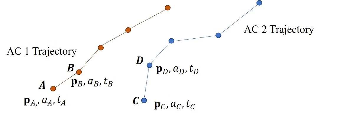 Figure 1. Example piece-wise linear trajectories for an aircraft pair